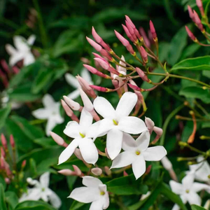 Le jasmin blanc, également connu sous le nom scientifique de Jasminum officinale, est une plante grimpante populaire appréciée pour ses fleurs parfumées. Originaire de l'Asie de l'Ouest, le jasmin blanc est une plante à feuilles persistantes ou semi-persistantes qui peut atteindre jusqu'à 10 mètres de hauteur et de largeur.