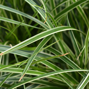 Cette variété forme une touffe dense et élégante de feuilles rubanées vert sombre ornées d’une large marge blanche, qui évoquent un ruban bicolore. Elle est semi‑persistante à persistante selon le climat, rustique jusqu’à environ −15 °C, et supporte mieux de courtes périodes de sécheresse que d’autres sedges. Son port compact et son feuillage panaché en font une plante idéale pour éclairer les coins ombragés, créer des bordures nettes ou agrémenter des compositions en pot. Elle tolère bien les cervidés et demande peu d’entretien.