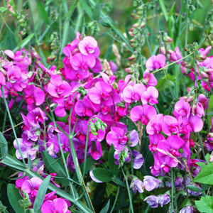 Le pois vivace grimpant, également connu sous le nom de gesse à larges feuilles ou de pois vivace, est une plante grimpante vivace originaire d'Europe et d'Asie. Elle est souvent cultivée pour sa beauté décorative et sa capacité à attirer les papillons et les abeilles. Cette plante peut atteindre une hauteur de 2 à 3 mètres et produit des grappes de fleurs dans une gamme de couleurs allant du rose clair au violet profond.