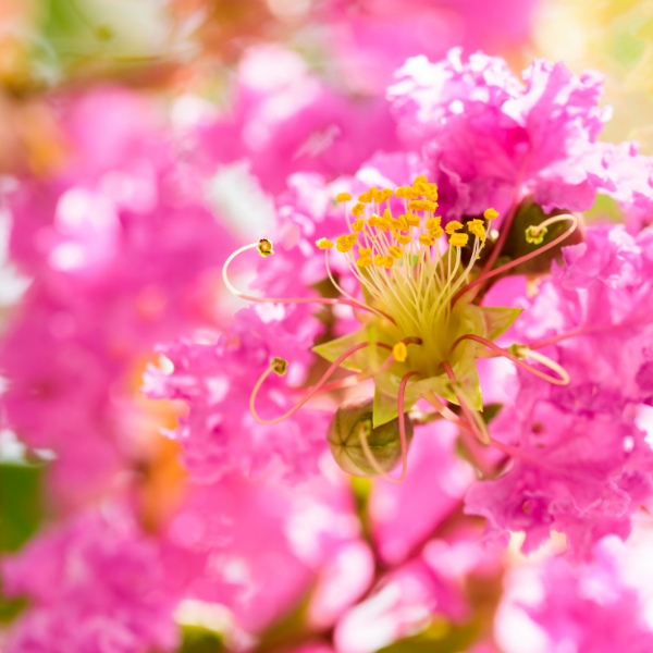 Espèce : Le Lagerstroemia indica ou lilas des Indes est un arbuste ou petit arbre à feuillage caduc et à l'écorce beige marbrée. Sa floraison apparaît de juillet/août jusqu'en septembre ce qui en fait une plante idéale pour égayer la fin de l'été. Il est parfois blanc, rose ou rouge grâce aux nombreux cultivars et variétés créés par les horticulteurs.