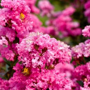 Le lilas des Indes ‘Rose’ est une plante ornementale à floraison estivale qui ne nécessite pas de pollinisation croisée. Ses fleurs attirent les insectes pollinisateurs, favorisant la biodiversité au jardin.