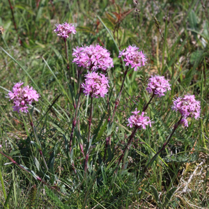 Lychnis alpina, également connue sous le nom de "croix de Savoie", est une plante vivace herbacée de la famille des Caryophyllaceae. Elle est originaire des régions montagneuses d'Europe et d'Asie centrale. Lychnis alpina a une hauteur maximale d'environ 30 cm et produit de petites fleurs rouges écarlates, roses ou blanches en été. Ses feuilles sont vertes, étroites et allongées, donnant à la plante une apparence légère et délicate.