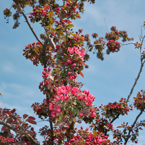 Le Malus ‘Coccinella’ est un arbre rustique et peu exigeant. Arrosez régulièrement au cours des deux premières années, surtout pendant les périodes sèches, puis réduisez les apports une fois l’arbre bien enraciné. Un paillage organique au pied permet de conserver l’humidité et de protéger les racines. Taillez légèrement en fin d’hiver ou au début du printemps pour supprimer le bois mort, les branches abîmées ou celles qui se croisent, mais évitez les tailles sévères qui nuiraient à sa floraison. Apportez chaque année au printemps un peu de compost ou d’engrais organique pour soutenir la floraison et la mise à fruits. Le Malus ‘Coccinella’ ne demande pas de soins particuliers et offre une belle floraison printanière suivie de petits fruits très décoratifs.
