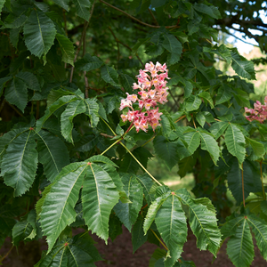 Le Marronnier à Fleurs Rouge (Aesculus carnea) est autofertile et produit des fleurs rouges très attractives pour les abeilles et autres pollinisateurs.