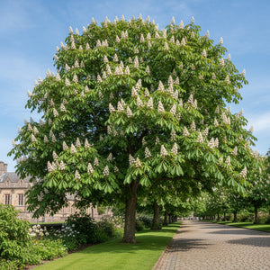 Aesculus hippocastanum, communément appelé marronnier commun ou marronnier d'Inde, est un arbre à feuilles caduques originaire d'Europe et d'Asie occidentale. Il est cultivé pour son aspect ornemental, notamment pour ses grandes fleurs blanches en forme de cloche et ses fruits en forme de capsule épineuse.