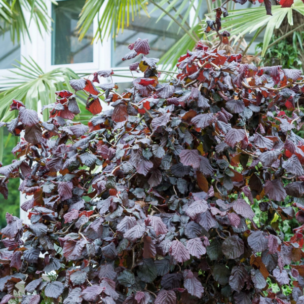 Le Corylus avellana Red Majestic® demande peu d’entretien une fois installé. Arrosez régulièrement les deux premières années, surtout en été, puis seulement en cas de sécheresse prolongée. Un paillage organique au pied aide à maintenir la fraîcheur du sol. Taillez en fin d’hiver pour supprimer le bois mort et conserver une silhouette équilibrée : vous pouvez aussi accentuer son port tortueux en choisissant les branches les plus esthétiques. Un apport de compost ou d’engrais organique au printemps soutiendra la vigueur et la densité du feuillage. Il est rustique et peu sensible aux maladies, tout en apportant un attrait décoratif toute l’année.