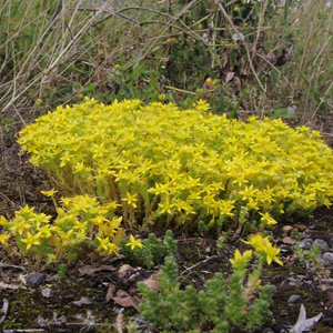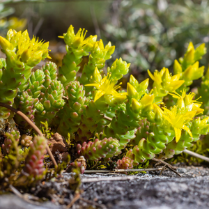 Le Sedum acre, également connu sous le nom de "Sedum des murs jaunes", est une plante vivace appartenant à la famille des Crassulaceae. Cette plante se distingue par son feuillage charnu et ses petites fleurs jaunes étoilées.