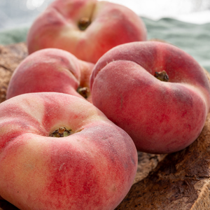 Les fruits sont plats et ronds, avec une peau jaune clair à rose. La chair blanche est juteuse, fondante et sucrée, avec un arôme délicat et une texture très agréable. Ces pêches sont parfaites pour la consommation fraîche, mais aussi pour la pâtisserie et la préparation de confitures.