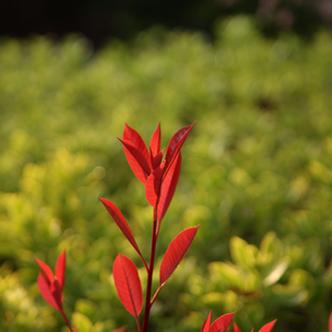 La Photinia 'Carré Rouge' produit des fleurs blanches au printemps. Ses jeunes pousses rouge vif deviennent vert foncé en vieillissant, offrant un contraste décoratif très marqué. Son feuillage persistant apporte un attrait esthétique tout au long de l’année.