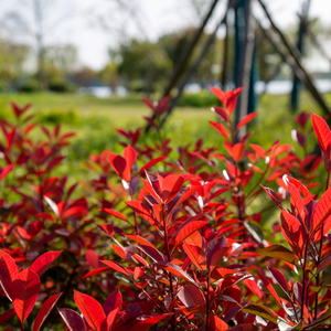 Arrosez régulièrement pendant les premières années après la plantation pour favoriser l’enracinement. Une fois bien installé, la Photinia 'Carré Rouge' tolère les périodes de sécheresse modérée.