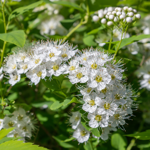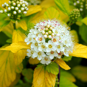 Le Physocarpus opulifolius ‘Dart’s Gold’ est un arbuste caduc vigoureux, atteignant environ 2 m de haut pour 1,5 m de large. Il se distingue par son feuillage jaune doré lumineux au printemps, qui devient vert chartreuse en été, puis prend des teintes cuivrées et orangées en automne. En juin-juillet, il se pare de fleurs blanches en ombelles contrastant magnifiquement avec son feuillage.