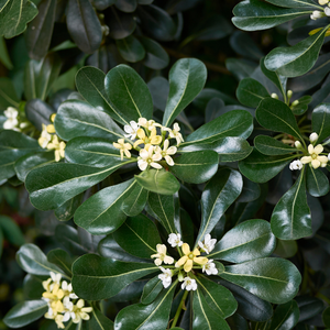 Le Pittosporum tobira est un arbuste persistant, robuste et facile à vivre. Arrosez régulièrement les deux premières années, surtout en été, pour assurer une bonne reprise, puis réduisez les apports car il supporte bien la sécheresse une fois installé. Un paillage organique au pied permet de conserver l’humidité et de protéger les racines superficielles. Taillez légèrement après la floraison ou au printemps pour maintenir une silhouette compacte et équilibrée. Supprimez les rameaux secs ou abîmés si nécessaire. Un apport de compost ou d’engrais organique au printemps renforcera sa vigueur et la densité de son feuillage. Très résistant aux embruns et à la pollution, il est adapté aux jardins côtiers comme aux jardins urbains.
