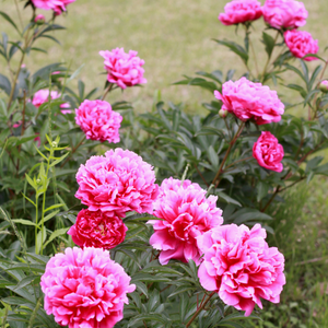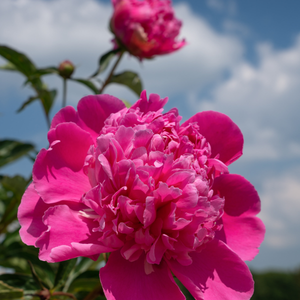 La Paeonia lactiflora ‘Bouquet Perfect’ est une vivace rustique et robuste, demandant peu d’entretien. Arrosez régulièrement la première année pour favoriser l’enracinement, puis elle devient autonome, sauf en cas de sécheresse prolongée. Un paillage organique aide à conserver l’humidité et la fraîcheur du sol. Supprimez les fleurs fanées pour préserver l’énergie de la plante et rabattez les tiges sèches à ras du sol à l’automne. Un apport de compost ou d’engrais organique riche en potasse au printemps encouragera une floraison généreuse. Évitez de déplacer les pivoines, car elles n’aiment pas être dérangées. En mai-juin, elle offre de grandes fleurs doubles d’un rose vif éclatant, idéales pour les massifs et les bouquets, avec une excellente tenue en vase.
