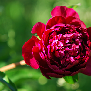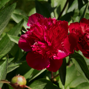 La Paeonia × lactiflora ‘Françoise Ortegat’ est une vivace rustique et vigoureuse qui demande peu d’entretien. Arrosez régulièrement la première année pour favoriser l’enracinement, puis elle devient autonome, sauf en cas de sécheresse prolongée. Un paillage organique permet de conserver la fraîcheur du sol en été. Supprimez les fleurs fanées pour ne pas épuiser la plante et rabattez les tiges sèches à ras en automne. Un apport de compost ou d’engrais organique riche en potasse au printemps stimulera la floraison. Évitez de déplacer les pivoines, qui n’aiment pas être dérangées. En mai-juin, elle produit de grandes fleurs doubles d’un rouge pourpre velouté, très parfumées, qui illuminent massifs et bouquets.
