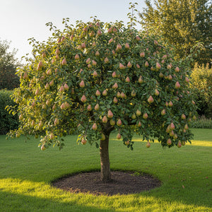 Cultivez votre propre Poirier Williams et profitez de poires juteuses et parfumées, idéales pour les desserts, la mise en conserve, ou la préparation de boissons délicates comme l'eau-de-vie de poire.
