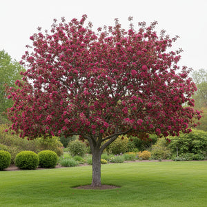 Caractéristiques générales : Le pommier d'ornement 'Liset' est un petit arbre à feuilles caduques qui atteint généralement une hauteur de 3 à 4 mètres. Il se distingue par son port étalé et sa forme arrondie, ce qui en fait un excellent choix pour les petits jardins ou les espaces restreints.