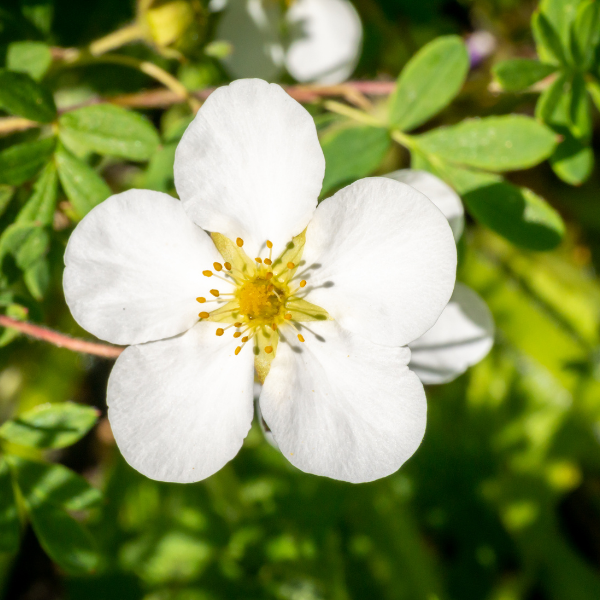 La Potentille arbustive (Potentilla fruticosa ‘Abbotswood’) est un petit arbuste caduc très apprécié pour sa floraison blanche pure et abondante, de juin à septembre. Compact et arrondi (environ 0,80 à 1 m de haut), il se plante en plein soleil pour une floraison généreuse, mais supporte aussi la mi-ombre légère. Peu exigeant, il pousse dans tout sol ordinaire, même pauvre, caillouteux ou calcaire, à condition qu’il soit bien drainé. Idéal en massif, rocaille, bac ou haie basse. La plantation se fait au printemps ou à l’automne, en dehors des périodes de gel ou de fortes chaleurs.