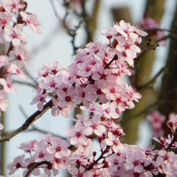 Il est apprécié pour sa floraison précoce, souvent rose ou blanche, et son feuillage pourpre chez certaines variétés. Idéal en isolé, en haie ou dans un massif, il apporte couleur et structure au jardin dès le début du printemps.