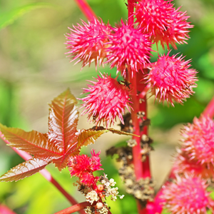 Le Ricinus communis est une plante annuelle vigoureuse, à croissance rapide et peu exigeante. Arrosez régulièrement, surtout en été, car il aime les sols frais, mais évitez l’excès d’eau. Un paillage organique au pied permet de maintenir l’humidité et de limiter les mauvaises herbes. Supprimez les fleurs fanées si vous souhaitez prolonger la floraison. Dans les sols pauvres, un apport de compost ou d’engrais organique au printemps et en cours de saison soutiendra sa croissance. Attention : toutes les parties de la plante, et surtout les graines, sont très toxiques si elles sont ingérées.
