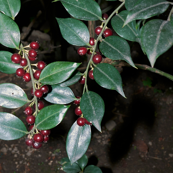 Le Sarcococca ruscifolia est un arbuste persistant très facile à vivre. Arrosez régulièrement les deux premières années, surtout en été, puis seulement en cas de sécheresse prolongée une fois installé. Un paillage organique (écorces, feuilles mortes) aide à conserver l’humidité et à protéger les racines superficielles. La taille n’est pas indispensable, mais vous pouvez raccourcir légèrement les rameaux après la floraison pour maintenir un port compact. Un apport de compost ou d’engrais organique au printemps soutiendra sa croissance et favorisera sa floraison parfumée en hiver.