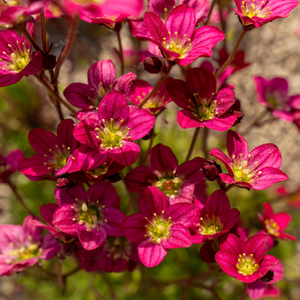 La Saxifrage Arendsii 'Touran Scarlet' produit des touffes de petites fleurs en forme d'étoile d'un rouge écarlate éclatant. Les fleurs s'épanouissent au printemps et sont regroupées en grappes au-dessus du feuillage dense,...
