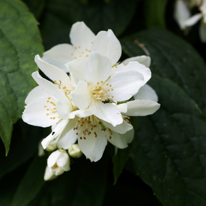 Le Philadelphus × lemoinei ‘Silberregen’ est un arbuste rustique, facile d’entretien et très florifère. Arrosez régulièrement les deux premières années, surtout en été, afin de maintenir un sol frais. Par la suite, il tolère une certaine sécheresse. Un paillage organique au pied est conseillé pour conserver l’humidité et protéger les racines. Taillez après la floraison, en supprimant les rameaux défleuris et en aérant légèrement le buisson, afin de stimuler la production de nouvelles pousses florifères pour l’année suivante. Supprimez aussi le bois mort ou abîmé si nécessaire. Un apport annuel de compost ou d’engrais organique au printemps renforcera sa vigueur. Sa floraison abondante, en grappes de fleurs blanches simples et parfumées, recouvre les rameaux en mai-juin et embaume le jardin, en faisant un classique des haies libres ou des massifs parfumés.