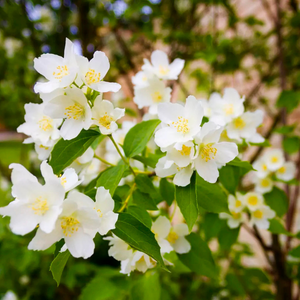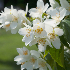 Le seringa 'Belle étoile' dispose d'une floraison blanche et parfumée. Elle se distingue des autres variétés par une fleur plus grande et légèrement tachée de pourpre en son coeur. Placez le-en isolé, dans une haie ou bien au coeur d'un massif mélanger à des arbustes à feuillage foncé. Ses fleurs simples dégagent un parfum délicat d'orange, elles sont d'ailleurs très appréciées des abeilles.