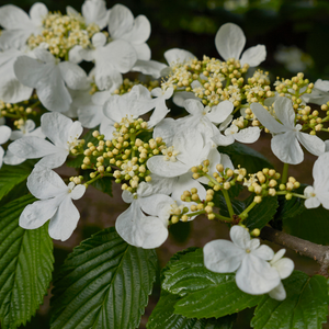 Espèce : Le viburnum plicatum ou viorne de Chine est un arbuste d'origine horticole. Il s'agit d'un arbuste étalé souvent utilisé en haie, en massif ou en isoler. Son port étalé en fait un atout pour les jardins. Les arbustes de cette espèce disposent d'un feuillage caduc et de fleurs généralement blanches souvent étalées également en milieu de printemps à avril ou mais selon les variétés. Plicatum vient de plicatus, qui veut dire "plié".